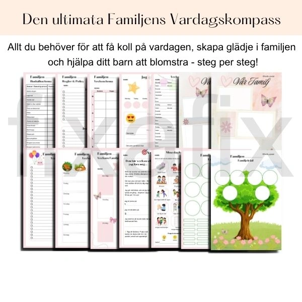 Familjens Vardagskompass är ett kärleksfullt och genomtänkt PDF-paket skapat för att hjälpa barn att bli mer självständiga – och föräldrar att få bättre överblick, struktur och harmoni i vardagen.