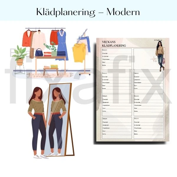 Den här charmiga klädplaneraren hjälper dig att planera outfits för hela veckan – redan i förväg. Perfekt för att minska stressiga morgnar, undvika klädkriser och spara tid.