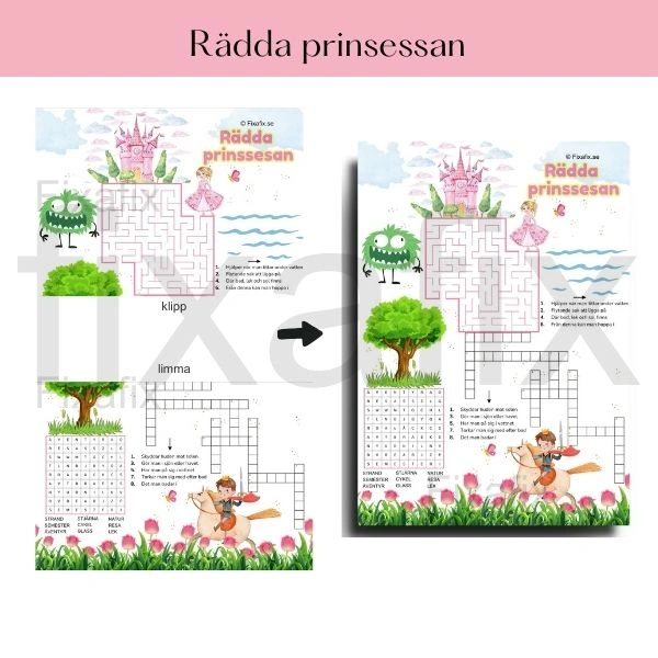 Varje uppgift för dem ett steg närmare att rädda prinsessan i det rosa slottet. En perfekt blandning av lek och hjärngympa för barn i skolåldern. Aktiviteten kan göras självständigt eller tillsammans med kompisar och syskon för extra skoj!